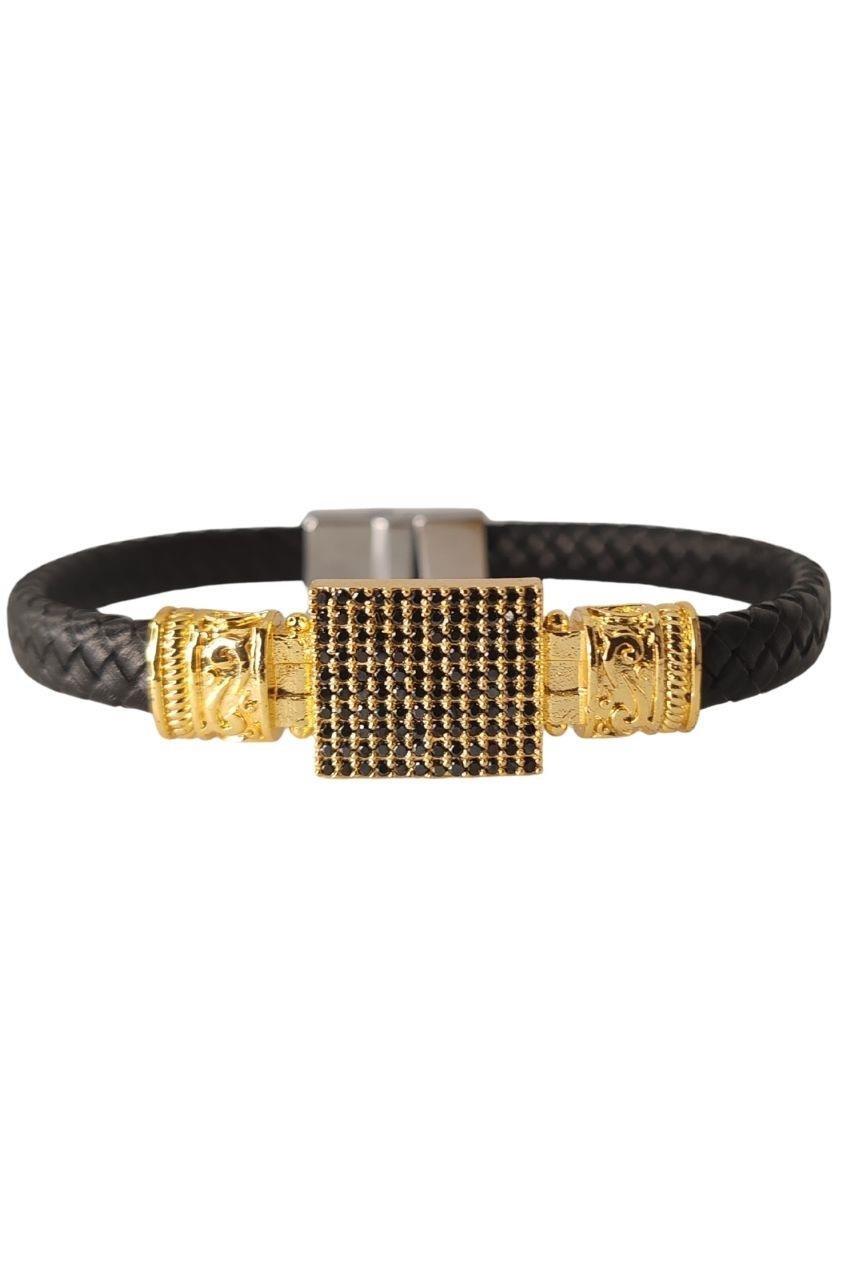 ConceptLuxe® Kalkan Erkek Bileklik, siyah ithal örgü deri kordonu ve üzerinde yer alan pirinç üzeri altın yaldız kaplama, zirkon taşlı kalkan süs detayı ile göz alıcı bir tasarıma sahiptir. Zamak üzeri krom kaplama kopçası ile hem sağlam hem de şık bir aksesuar sunar.